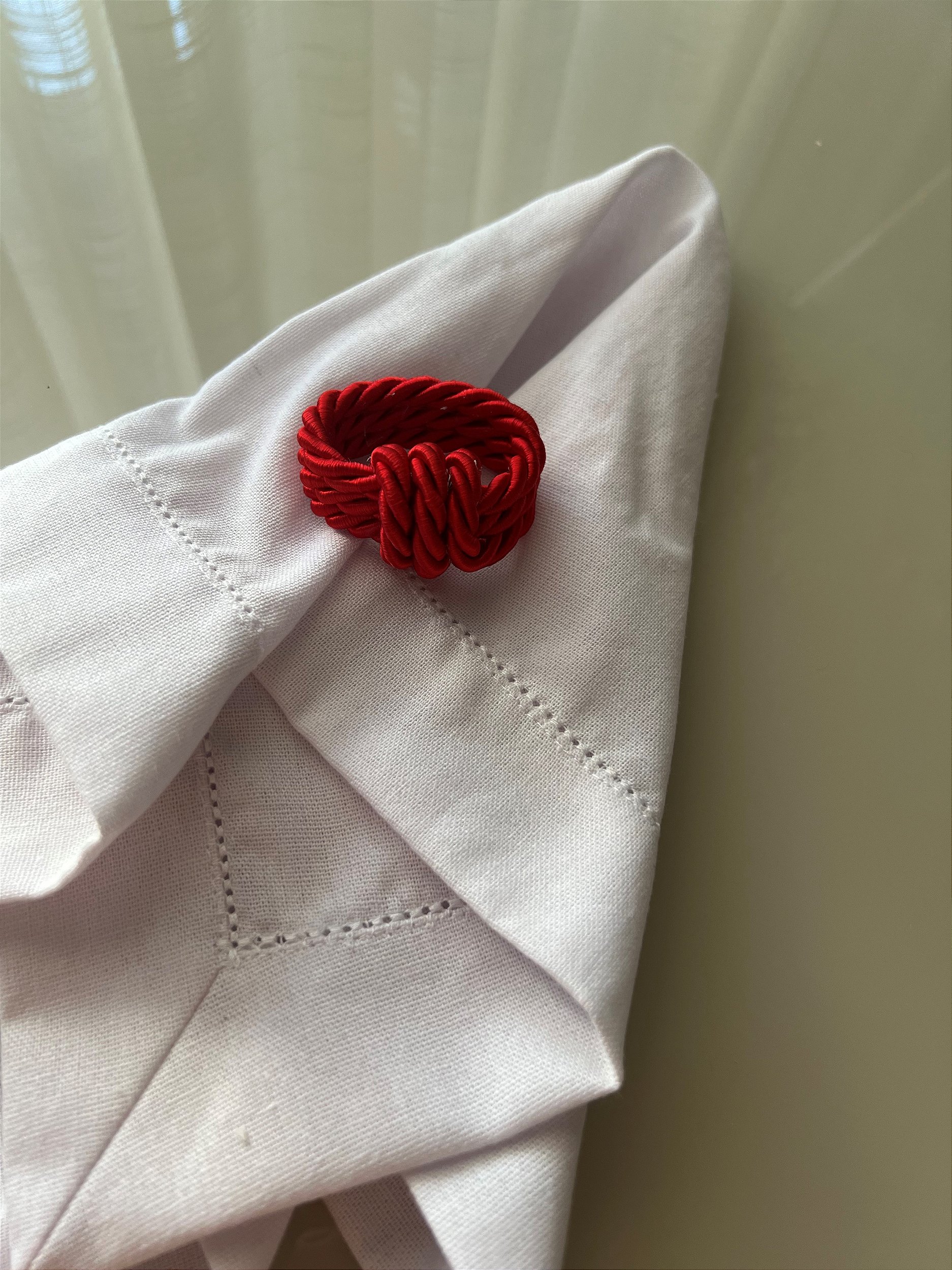 Anel de corda de tecido na cor vermelha.