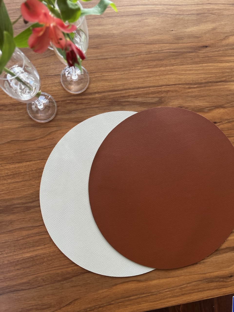 Este jogo americano é totalmente impermeável, frente e verso, pois o courino é um tecido sintético e não tem absorção de líquidos.