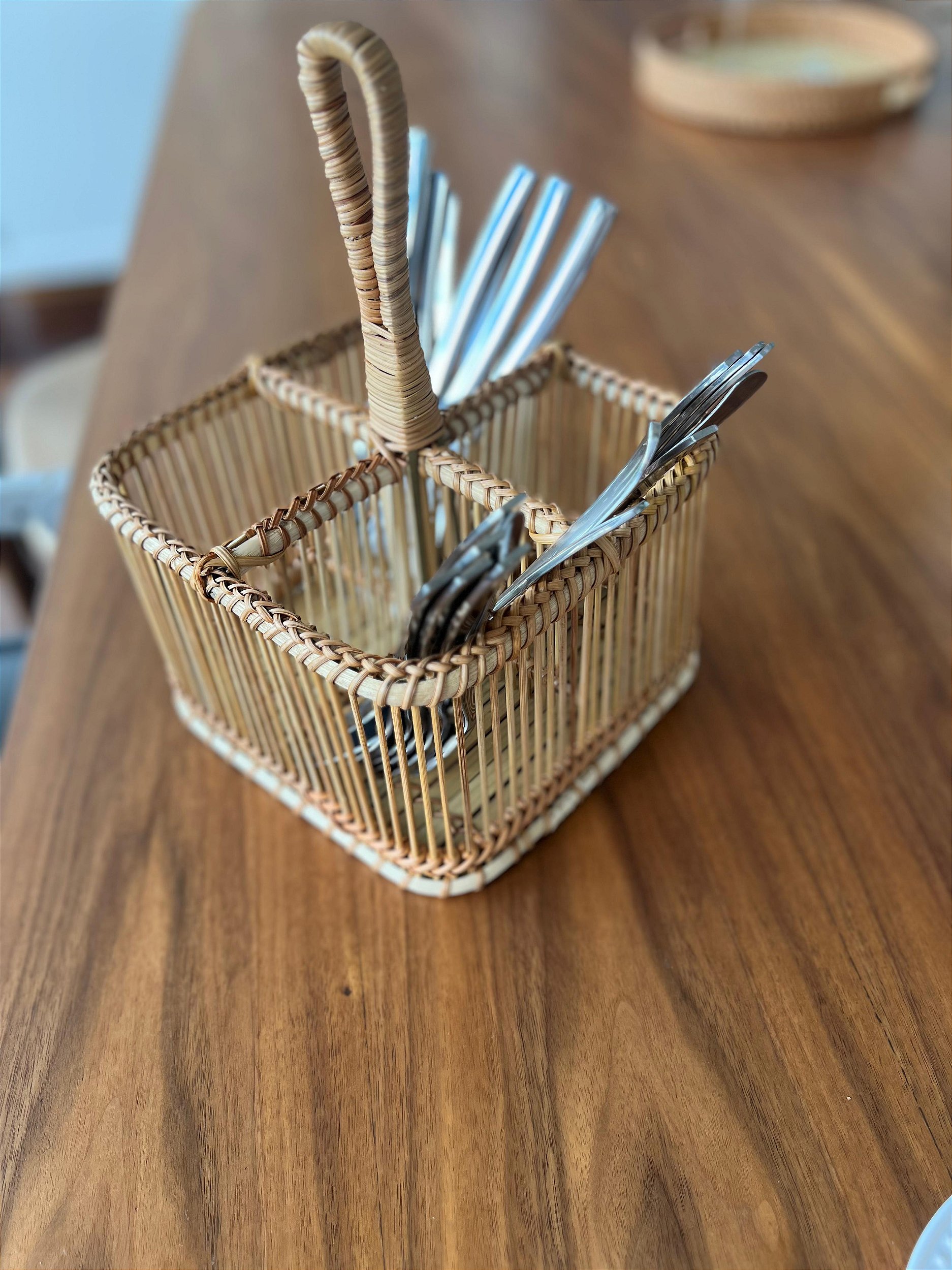 Porta Talheres todo feito com bamboo, tanto na base quanto no trançado.